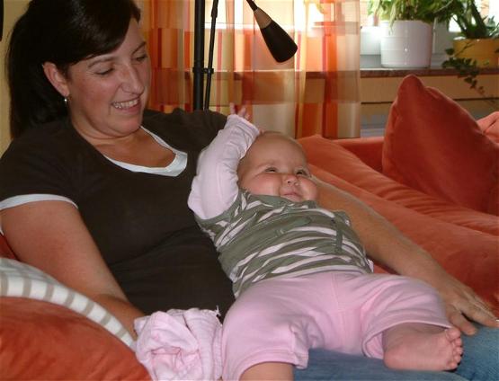 Im Moment werde ich auch ziemlich verwöhnt da Oma und Opa mich öfter herumtragen. Ich nütz das natürlich richtig aus. Leider können Oma und Opa nur eine Woche bleiben und deshalb genieße ich die Zeit mit den beiden. Oma hat heute nachmittag mit mir auf der Decke getobt. Und wenn ich meinen Brei esse macht sie immer Blödsinn mit mir, hihi...Mama schimpft dann immer. Aber wir haben trotzdem Spaß, hihi..