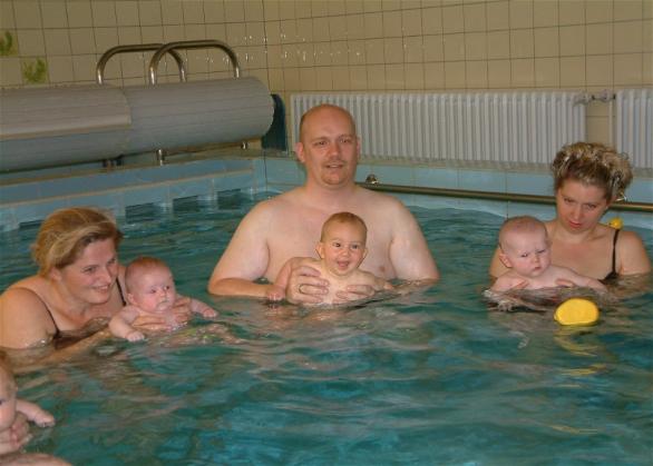 Mama hat schnell alles eingepackt und dann ging es auch schon los. Mein Freund Jannick war auch schon da. Endlich ging es los und ich durfte mit Papi als erstes ins Wasser. Das hat vielleicht Spaß gemacht. Ich wollte gar nicht wieder raus. Mama hat uns von draußen zugeschaut. Wir haben zusammen gesungen und Papi hat mich ganz toll durch das Wasser gezogen.