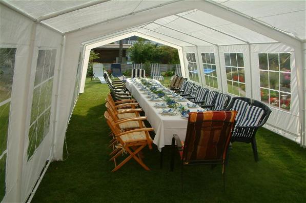 Zuhause haben Oma und Opa schon auf uns gewartet. Opa hat fleißig geholfen das Zelt aufzubauen, denn heute abend ist noch eine kleine Feier bei den Nachbarn. Nach meinem Mittagessen hab ich einen langen Mittagsschlaf gemacht. Omi hat sich auch ausgeruht, hihi... und gleich geht es los zu den Nachbarn...bis bald...