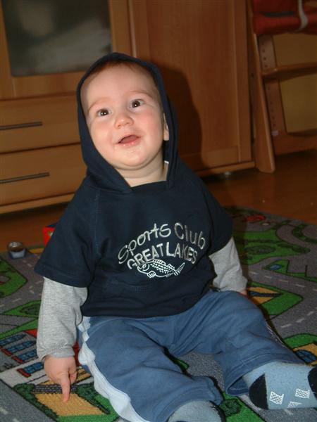 Nach meinem Schläfchen haben wir nch kurz besuch von Bettina bekommen. Ich hab ihr natürlich sofort gezeigt wie toll ich robben kann. Danach bin ich zu Oma rüber um mit ihr zu spielen. Wieder zurück hat Mama mir einen leckeren Brei gemacht. Da der warm war hat das meinem Hals richitg gut getan. Abends hab ich noch mit Oma und Opa aus Tirol telefoniert. Ich versuche immer die beiden anzugreifen, aber irgendwie klappt das nicht. Papa kam heute ganz spät von der Arbeit nach Hause. Ich hatte schon Angst dass er mich nicht ins Bett bringen kann. Aber dann war er grad noch rechtzeitig da, puh Glück gehabt..mal schauen wie es heute klappt.