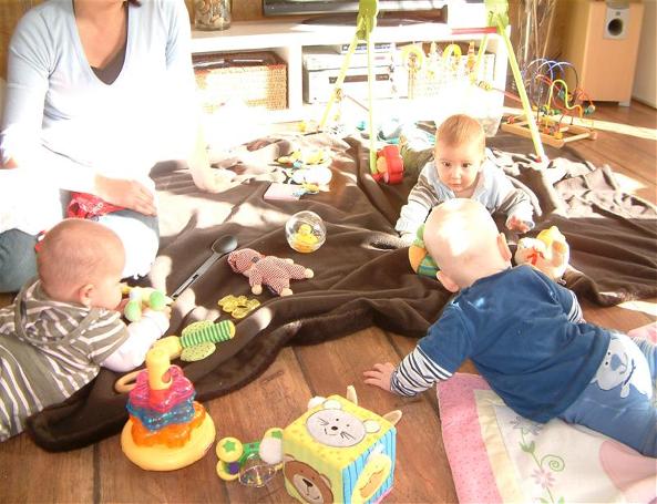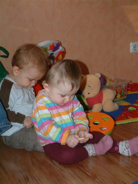 Nach dem Frühstück mit Papa war wieder so eine Ausruhphase angesagt. Mama hat mich ins Bett gelegt und sie hat schon mal alles vorbereitet denn gleich bekommen wir noch Besuch von meinem Freund Leon. Lucia kommt ja heute nicht mit denn die ist ja mit ihrer Mama und ihrem Papa in der Türkei. Ich werd heute genau aufpassen wie Leon krabbelt denn ich will das jetzt auch bald mal können. Als ich wieder wach wurde waren Leon und seine Mama schon da. Ich hab dann erst einmal etwas gegessen und danach haben Leon und ich ein bißchen gespielt. Allerdings klappte das mit uns beiden heute nicht so gut, denn erst hat Leon mich umgerissen und anschließend hab ich mich gerächt, tja aber wir sind nun mal noch klein und wissen noch nicht so genau wie fest man was machen kann..aber das klappt bestimmt auch bald.