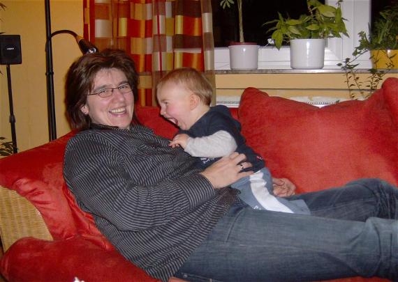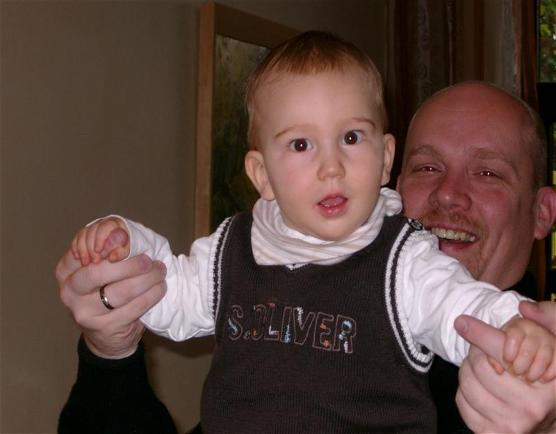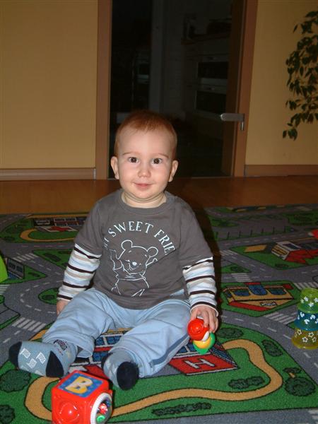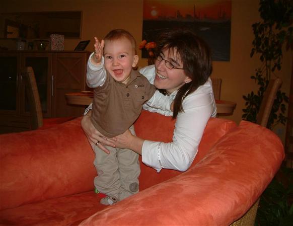 Nach dem Frühstück hab ich mit Mama und Papa etwas gespielt. Mama wollte heute weg. Sie war bei Isolde eingeladen. Papa war wieder soweit fit dass er zumindest mit mir auf dem Boden rumturnen konnet und mich auch vorsichtig hochheben konnte. Bevor Mama los wollte bin ich noch kurz zu Oma denn die wollte heute nachmittag auch weg. Nachdem ich zurück war hat Mama mich etwas hingelegt. Sie hat mir gesagt dass sie gleich weg will aber dass Papa da ist und ich schön lieb sein soll. Bin ich doch immer, oder, hihi...naja jedenfalls hab ich fast zwei Stunden geschlafen. Papa hat mich dann gefüttert. Allerdings hab ich immer noch nicht so viel Hunger. Das macht wohl die Erkältung. Papa und ich haben dann zusammen auf dem Boden gespielt. Wir hatten richtig viel Spaß.