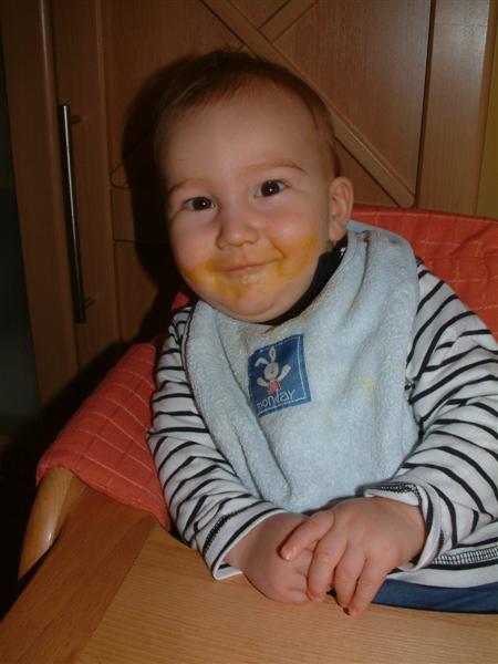 Nach meinem Mittagschlaf kam Oma zu uns zum Essen. Ich durfte natürlich wieder mitessen. Das macht richtig viel Spaß. Am meisten freu ich mich immer auf den Nachtisch und wenn Papa noch Eis hat, bekomme ich da auch immer noch etwas ab. Nach dem Essen hab ich ein bißchen gespielt. Da das Wetter heute so schlecht war konnten wir gar nicht raus und so haben wir es uns zuhause gemütlich gemacht. Nachmittags hab ich noch ein bißchen geschlafen. Danach hab ich noch mit Mama und Papa gespielt. Wir haben ganz viel Blödsinn gemacht und sind wie wild herumgerobbt. Naja ich bin gerobbt, Mama und Papa sind gekrabbelt..leider war es dann schon wieder Zeit für mein Abendessen und dann fürs Bett. Also im Moment mag ich gar nicht ins Bett und Mama oder Papa müssen ein paar mal nach mir schauen...ich muß halt auf Nummer sicher gehen ob sie noch da sind.