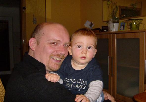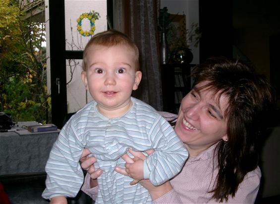 Vormittag hab ich mit Papa getobt und wir haben Mama beim Kochen zugeschaut. Oma wollte uns nämlich heute noch besuchen. Ich hab wieder ein paar neue Spielsachen, wobei ich ja sagen muß die Tapete und die Glastür locken mich immer mehr an...aber ich soll da nicht dran, puh aber jetzt kann ich robben und da muß ich doch mal schauen was es hier noch so gibt, oder? Ich geh jetzt immer so gegen zwölf noch einmal ins Bett und das klappt auch sehr gut, meistens schlaf ich dann so bis halb zwei. Danach schmeckt mir das Essen natürlich erst richtig. Oma war auch schon da und so konnten wir alle vier gemeinsam essen. Ich durfte auch ein bißchen bei Papas Kroketten mitnaschen. Anschließend haben wir mit Oma noch meine neuesten Bilder angeschaut.