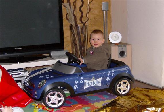 Ich hab dann mein zweites Frühstück bekommen und danach hat Mama mich angezogen. Wir wollten nämlich noch einkaufen und nach Moers fahren um bei Mamas Kollegen vorbei zu schauen. Im Auto bin ich aber wieder so toll müde geworden dass ich noch ein bißchen die Augen zugemacht hab. Endlich bei Braun angekommen hat Mama mich in den Buggy gesetzt und wir haben Mamas Kollegen besucht. Frank hat wieder Blödsinn mit mir gemacht und er hat mir gezeigt wie mein neues Auto funktioniert das Mama mir mitgerbacht hat. Hihi das macht sogar Geräusche. Danach haben wir noch meine Patentante Karina und Rita besucht. Ich wollte so gern dass Karina mich rausnimmt, aber sie darf nicht mehr so schwer heben da Finja schon bald kommt und sie sich ein bißchen schone muß. Ich bin schon ganz gespannt wann es endlich los geht. Aber Mama sagt dass ich noch etwas warten muß bis Finja groß genug ist.