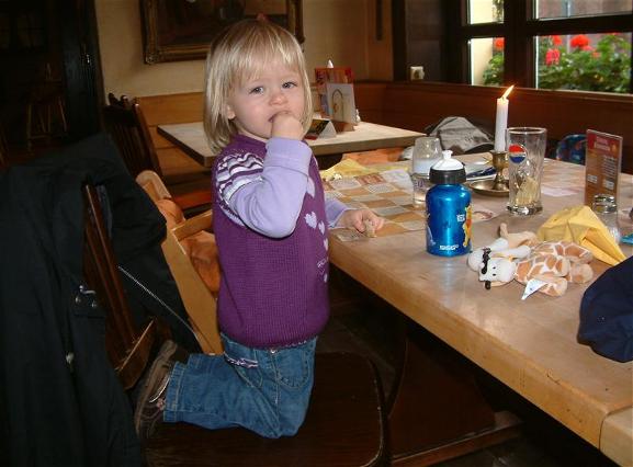 Nach dem Frühstück sind wir drei zum Markt gelaufen Susanne und Ralf wollten uns heute noch besuchen und so mußten wir noch einiges einkaufen. Papa ging es auch schon wieder etwas besser. Er konnte mich nur noch nicht so richitg toll herum tragen. Ich hoffe das klappt bald wieder. Während die vier gefrühstückt haben durfte ich auch in meinen Hochstuhl und Mama hat mir ein Stück von einem Brötchen gegeben. Mh das war vielleicht lecker. Danach hab ich noch etwas gespielt. Aber das viele robben macht ganz schön müde und so hat Mama mich ins Bett gebracht. Nachdem ich fast zwei Stunden eschlafen hab war ich wieder fit für neue Abenteuer.
