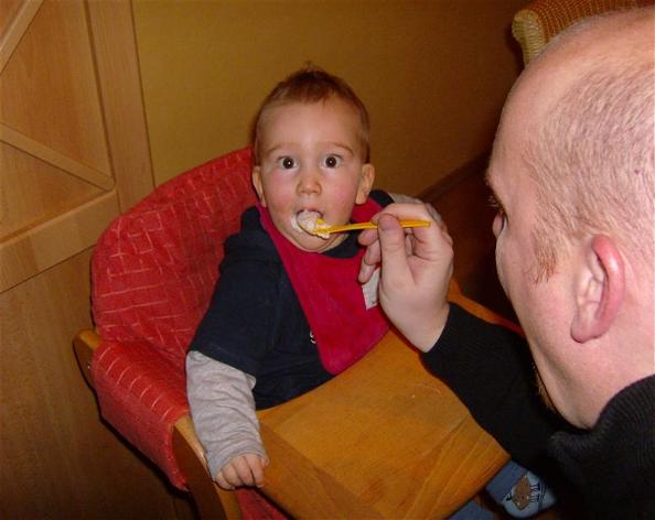 Nach meinem Vormittagsschlaf hab ich mit Papa zusammen noch ein zweites Frühstück eingenommen. Mh ich kann mir doch seinen leckeren Kakao nicht entgehen lassen, oder? Als wir fertig waren war Mama schon startklar. Papa und ich waren noch mit draußen und haben ihr noch gewunken und dann sind wir schnell wieder in die warme Stube...dort haben wir erst einmal die ganzen Spielsachen verteilt, besser gesagt ich hab sie verteilt. Zwischendurch bin ich immer mal wieder gerobbt denn Papa wollte mich ständig anknabbern oder kitzeln...hihi aber das hat so viel Spaß gemacht. Von dem vieln Herumtoben bin ich richitg müde geworden und so hat Papa mich für meinen Mittagschlaf ins Bett gebracht. Ich bin auch schnell eingeschlafen so toll müde war ich. Nach etwas über einer Stunde war ich wieder fit. Papa und ich haben zusammen zu Mittag gegessen. Danach durfte ich noch ein bißchen zu Oma rüber um zu spielen.