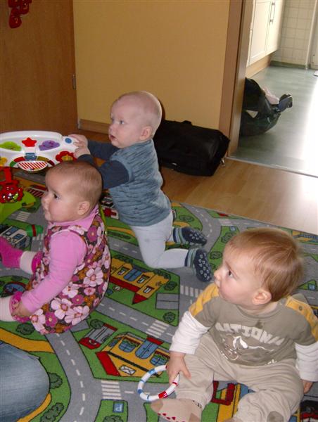 Aber erst muß noch diese Woche schnell vorbei gehen und dann gehts los. Mama und ich sind heute zu Lucia gefahren. Leon war leider nicht da denn seine Mama ist krank, Sonst erwischt es immer und Kinder aber diesmal hats auch eine Mami erwischt. Claudia und Lucia haben uns schon erwartet und nachdem Mama mir die dicke Jacke ausgezogen hat konnten wir endlcih spielen. Unsere Mamis haben in der Zwischenzeit gefrühstückt und Lucia und ich haben die Gegend unsicher gemacht. Aber irgendwie durfte wir mal wieder gar nichts, tststs..Mamis immer passen sie so genau auf was wir machen.