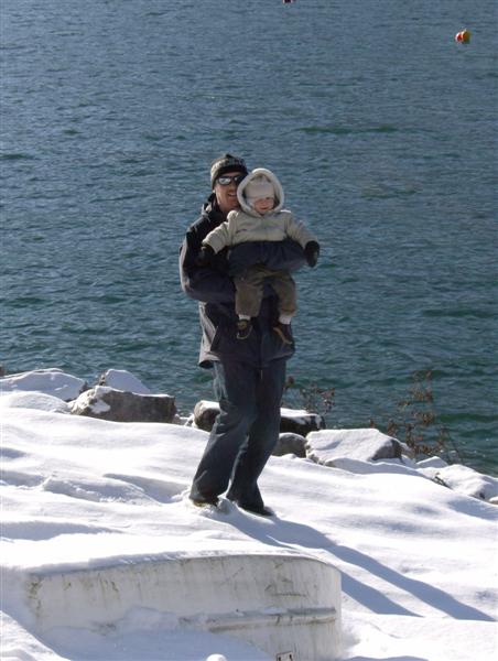 Nach dem Frühstück hab ich ein wenig mit meinen neuen Sachen gespielt. Dabei bin ich aber wieder so toll müde geworden, sodass ich mich mit Mama noch einnal ins Bett gelegt habe. So haben wir dann fast eine Stunde geschlafen. Danach hab ich eine Kleinigkeit gegessen und dann sind wir alle zusammen zum Achensee gefahren. Ich muß schon sagen Mamas Heimat gefällt mir immer besser. Wir hattten eine tollen Vormittag. Wir sind eine große Runde durch den Schnee gelaufen und Papa hat mir den Achensee gezeigt. Jetzt weiß ich auch wie richitger schöner Schnee aussieht. Ui aber das war vielleicht kalt. Mama hatte mich aber gut eingepackt sodass ich nicht frieren mußte.