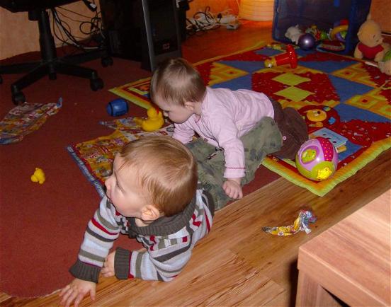 Wieder zurück hat Mama mich ins Bett gebracht. Vom vielen Spielen und krabbeln bin ich richitg müde geworden. Das strengt an ich versuch jetzt nämlich richtig zu krabbeln und es klappt schon ganz gut. Ich hab dann einen ausgiebigen Mittagsschlaf gemacht und danach lecker mit Mama zu Mittag gegessen. Dann haben wir noch zusammen gespielt. Später durfte ich zu Oma rüber denn Mama wollte einkaufen fahren. Da so ein schlechtes Wetter war war ich froh dass ich nicht mit mußte und stattdessen mit Oma spielen konnte.