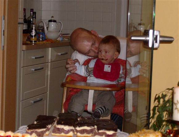 Wieder zurück waren schon alle Gäste da. Ui waren das viele und die haben so schön für Oma gesungen. Ich hab die Gäste natürlich tatkräftig unterstützt. Dann kam das Essen und alle haben es sich schmecken lassen. Ich war schon ziemlich ko..auch kein Wunder bei so vielen Leuten und alle haben mich angesprochen. Ich wollte dann gar nicht richitg essen und so hat Mama mich ins Bett gebracht. Ich konnte recht gut einschlafen und das obwohl ich alle noch hören konnte. Aber irgendwie hat mich das beruihgt. Ich hab richtig tief und fest geschlafen. Über zwei Stunden..aber danach hatte ich so einen großen Hunger dass Mama und Papa gar nicht schnell genug mein Essen machen konnten. Tante Karina und Onkel Dirk waren in der Zwischenzeit auch gekommen um Oma zu gratulieren. Ich durfte dann mit Papa Omas Kuchen probieren, das war vielleicht lecker. Mh ich wollte gar nicht aufhören, aber leider hat Papa mir nichts mehr gegeben, naja zuviel Süßes soll ich ja noch nicht.