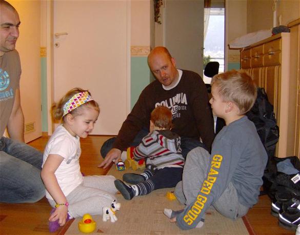 Dann ging es los nach Innsbruck. Tante Doris, Onkel Christoph, Julia, Lisa und Emanuel haben uns schon sehnsüchtig erwartet. Aber auch da mußte ich mir erst einmal alles anschauen. Nach kurzer Zeit war dann alles klar und ich hab mit Emi gespielt. Ich durfte sogar mit seiner neuen Eisenbahn spieln, ui da hab ich mich gefreut. Alle waren so fest lieb zu mir und auch da hab ich ganz tolle Sachen zum Anziehen bekommen. Es war ein sehr schöner Nachmittag auch wenn das alles für mich sehr viel ist. Ich bin ja noch klein und da hat man schon einiges zu verarbeiten. Auf dem Rückweg bin ich dann prompt eingeschlafen.