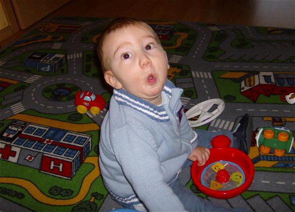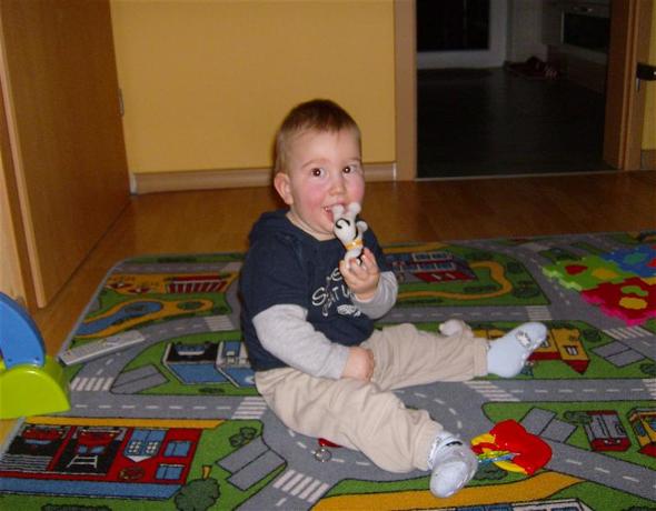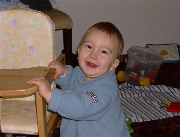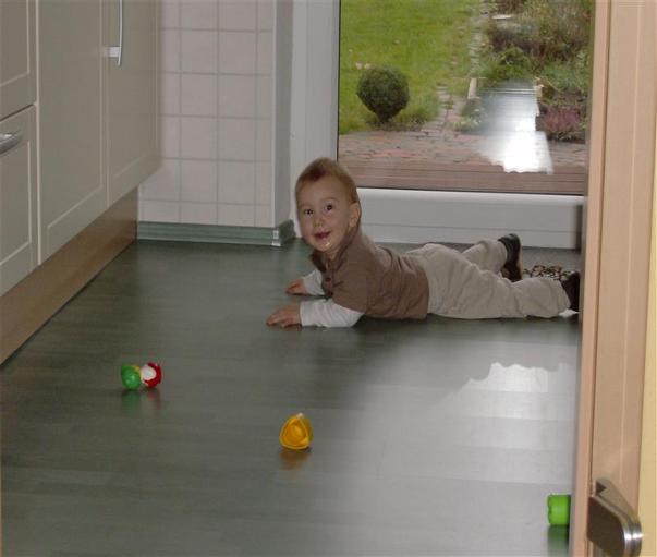 Heute hab ich wieder richitg gut geschlafen. Mama und Papa waren ganz erfreut denn ich hab bis fast halb neun ausgehalten. Danach mußten wir aber aufstehen denn ich hatte schon einen riesen Hunger. Mama und ich haben dann gemütlich gefrühstückt, Papi haben wir noch ein bißchen shclafen lassen. Dann haben wir gespielt und ich hab wieder die Küche und das Wohnzimmer gründlich erkundet.