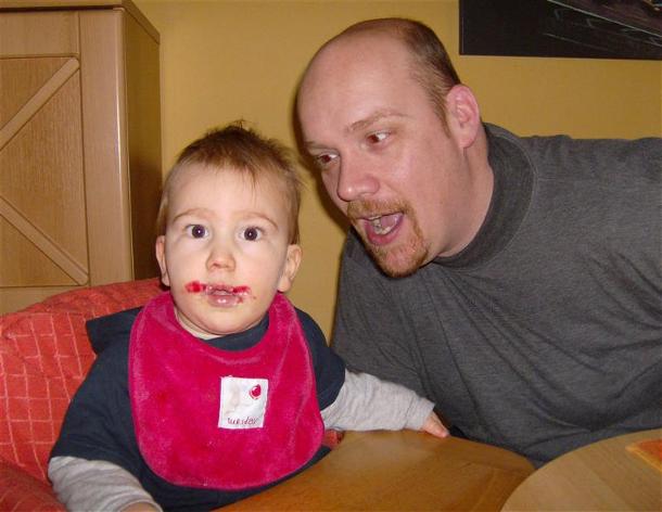 Von dem vielen Spielen bin ich richtig müde geworden und so hat Mama mich nach oben gebracht. Aber irgendwie hat heute ständig das Telefon geschellt und ich konnte nicht so gut schlafen. Naja an Mamas Geburtstag ist das auch ok. Nachmittag hatte Papa dann endlich Zeit für mich. Wir haben schön zusammen gespielt und später kamen uns noch Oma und Carsten besuchen. Wir haben Kaffee getrunken und Kuchen gegessen. Nachdem alle wieder weg waren hab ich noch mit Papa gespielt und Mama hat schon ein bißchen etwas für Sonntag vorbereitet, schließlich war noch einiges zu tun.