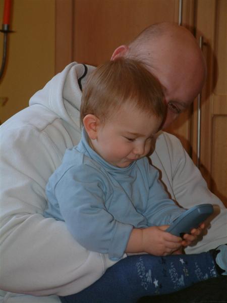 Papa mußte heute ein bißchen länger arbeiten und so hab ich in der Zwischenzeit mit Oma und Opa aus Tirol telefoniert. Ich versuch auch immer sie anzugreifen aber irgendwie klappt das nicht. Mh schon komisch, aber Mama hat mir erklärt dass ich Oma und Opa zwar sehen kann aber dass sie so weit weg wohnen dass ich sie nicht angreifen kann, mh versteh ich trotzdem nicht, aber auch egal ich freu mich dass ich sie wenigstens sehen kann. Dann kam auch endlich Papa nach Hause und wir haben zusammen zu Abend gegessen. Leider war der Tag dann aber auch schon wieder vorbei und für mich war Schlafenszeit.