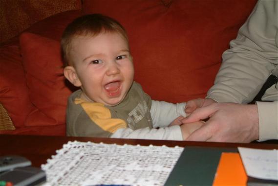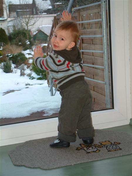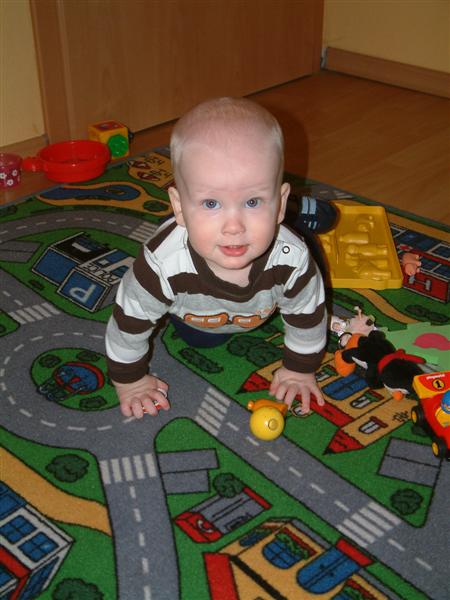 Mamai und ich haben uns einen gemütlichen Vormittag gemacht. Es war auch so toll kalt draußen dass wir gar keine Lust hatten raus zu gehen. Mama hat mich dann noch einmal ins Bett gebracht. Ich brauch doch noch ein bißchen Schlaf vormittags denn sonst kann ich ja nicht so viel spielen. Im Moment bin ich auch immer in Action. Ich versuche mich überall hoch zu ziehen und wenn es geht hangel ich mich auch schon voran. Am liebsten hab ich es wenn ich bei Papa oder Mama an der Hand bin da kann ich gut üben wie ich laufen muß. Nachdem ich mein Schläfchen aus hatte hab ich noch ein wenig gespielt. Anschließend hab ich Mama beim Saugen zugeschaut und bin ihr immer hinterher gekrabbelt sodass sie gar nicht richitg saugen konnte..hihi ich bin schon ein kleiner Lauser.