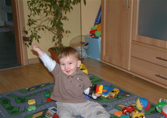 Nachdem wir aufgestanden sindhaben wir drei lecker gefrühstückt. Mh morgen muß Papi wieder arbeiten. Schade ich hab mich so toll an ihn gewöhnt. Aber er hat mir gesagt dass er an meinem ertsen Geburtstag wieder Urlaub hat...und das ist ja nicht mehr so lang.Nach meinem Vormittagschlaf haben wir zusammen mit meine vielen Autos gespielt. Mein Cousin Kili hat mir gezeigt wie ich richitg toll mit ihnen spielen kann. Mama hat heute wieder lecker für uns zu Mittag gekocht. Und nachdem wir zusammen gegessen haben hab ich noch ein wenig gespielt. Mama und Papa haben sich ausgeruht und mir ein bißchen zugeschaut. Muß ja auch einmal sein jetzt kann ich auch schon gut alleine spielen auch wenn es nicht so viel Spaß macht. Dann wurde mir aber doch langweilig und ich hab mal alles untersucht, denn bei gewissen Sachen weiß ich dass Mama oder Papa kommen wenn ich da dran geh, hihi ganz schön clever oder?