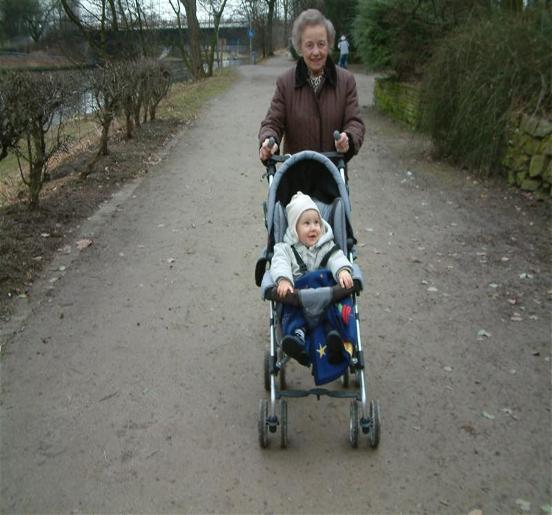 Wieder zuhase hab ich noch ein bißchen gespielt und anschließend hat Mama mich ins Bett gerbacht. Ich war auch ziemlich ko war ja lange nicht schwimmen. Nach meinem Mittagsschlaf war Oma bei uns. Mama hat lecker gekocht und ich durfte wieder mitessen. Mama hat heute vormittag auch Kuchen gebacken, mh wann wir den wohl essen? Nach dem Essen hat Papa mich angezogen und ich durfte bei dem schönen Wetter zum ersten mal draußen mit meinem Laufwagen durch die Gegend rennen. Das war ein Spaß, endlich einmal ohne Hindernisse.