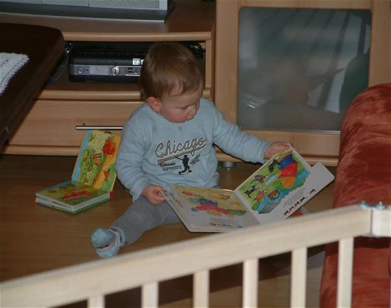 Nach dem Frühstück hab ich mal weider meine Spielsachen herausgeholt die ich schon lange nicht mehr hatte. Mama stellt nämlich immer ein paar Sachen zur Seite damit ich nicht zuviel hab und ich mich auf ein paar Sachen konzentrieren kann. Im Moment bin ich aber sehr gern in meiner Bücherecke und bei Papa auf der Couch, hihi da kann ich so toll toben, ich versuche auch schon mal alleine hoch zu krabbeln aber das klappt noch nicht ganz.
