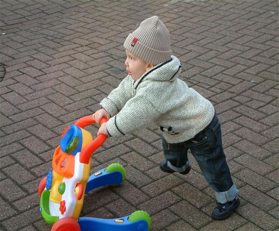 Nach meinem Schläfchen haben wir zusammen zu Mittag gegessen. Danach bin ich noch ein wenig zu Oma rüber. Mama mußte noch einiges erledigen und so konnte ich aber schön mit Oma spielen. Wieder zurück hab ich noch mit Mama ein bißchen auf der Couch gekuschelt und so sind wir natürlich eingeschlafen. Das war aber so schön. Nachdem wir wieder wach waren haben wir zusammen gespielt. Mittlerweile traue ich mir schon etwas mehr zu und laufe ziemlich flott mit meinem Wagen durch die Gegend.