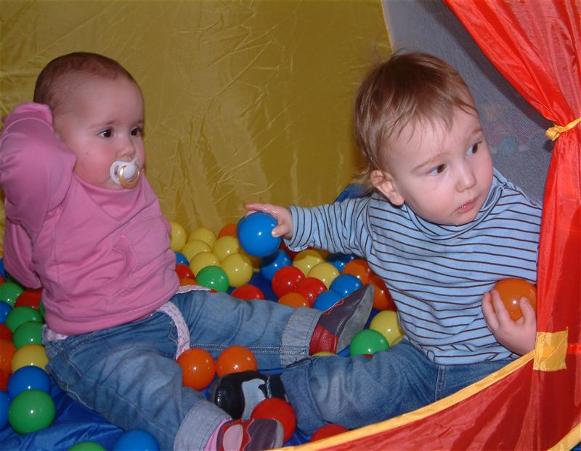 Als wir bei Leon ankamen war Lucia schon da. Ich hab natürlich schon wieder eine Schnupfennase und hoffe dass ich die anderen nicht anstecke. Wir drei haben dann erst einmal zusammen gespielt und anschließend gab es für alle drei ein leckeres Brötchen. Das geht doch nicht dass unsere Mamis frühstücken und wir nichts abbekommen, oder? Lucia und ich haben uns dann im Bällezelt von Leon vergnügt und Leon hat uns gezeigt wie toll er schon laufen kann. Ich hoffe ich schaff das auch bald.