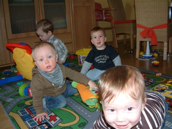 Bevor alle zu uns kamen hat Mama mich noch einmal ins Bett gebracht damit ich gleich fit zum Spielen bin. Nachdem ich fast eine Stunde geschlafen hab waren meine Freunde schon da. Ich hab erst einmal etwas gegessen und dann hab ich mit den anderen gespielt. Unsere Mamis haben sich in der Zwischenzeit gut unterhalten und wir Kids hatten unseren Spaß. Nachdem alle weg waren bin ich noch zu Oma rüber. Mama hat in der Zeit alles weggeräumt. Wir haben aber auch ein Chaos hinterlassen. Aber so ist das halt wenn vier Kinder zusammen spielen. Wieder von Oma zurück hab ich einen langen Mittagsschlaf gemacht. Anschließend haben Mama und ich zusammen zu MIttag gegessen.
