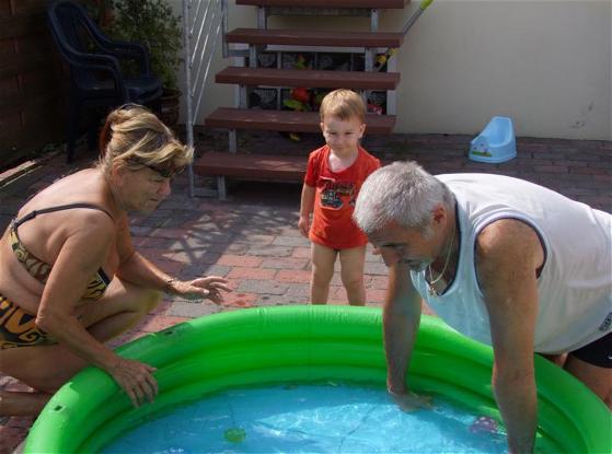 Am Mittwoch morgen war ich etwas durcheinander. Ich dachte nämlich wir fahren zu Papa. Allerdings hab ich nicht darna gedacht dass ja Oma und Opa da sind...puh da können wir natürlich nicht weg. Mh schade dann seh ich Papa erst am Freitag wieder. Um mich ein wenig abzulenken sind wir zusammen in den Zoo gegangen. Da gab es sooo viel zu schauen, cih wußte gar nicht wo ich als erstes schauen sollte. Aber Oma und Opa haben mich immer hochgehoben sodass ich alles genau sehen konnte. Danach haben wir noch zu Mittag gegessen und anschließned sind wir wieder nachhause gefahren. Es war aber auch schon ziemlich heiß und ich war total müde. Ich bin dann auch im Auto eingeschlafen und hab nicht einmal gemerkt dass Mama mich ins Bett gebracht hat. Nach meinem Mittagsschlaf waren wir wieder im Garten. Opa hatte morgens mein Becken neu befüllt und diesmal war es schon schön warm. Allerdings so richtig rein wollte ich auch nicht. Mir war lieber dass ich mit Oma und Opa plantschen konnte. Leider ging auch dieser Tag wieder schnell rum und nachdem wir noch mit Papa telefoniert hatten war für mich der Tag zu Ende.