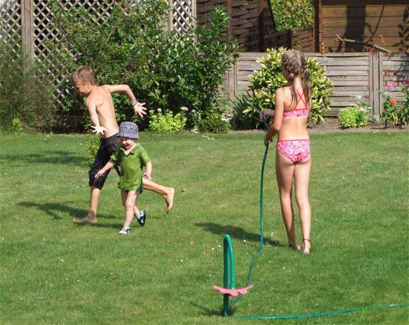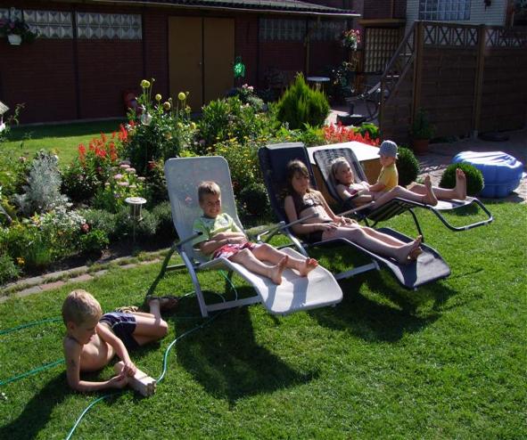 Am Samstag morgen durfte ich wieder mit Mama und Papa kuscheln und so wurde es recht spät. Aber egal hauptsache mit beiden kuscheln. Oma und Opa waren schon vor gelaufen um ein paar Sachen auf dem Markt zu kaufen. Wir sind dann schnell hinterher und schließlich haben wir noch Fleisch und Brot für Sonntag geholt. Sven-Leon, Sonja und Carsten wollten nämlich vorbeikommen. Nachmittags kamen wieder meine großen Freunde Hendrik und Luna. Da es wieder so tolles Wetter war konnte wir wieder den Garten unsicher machen. War das ein Spaß. Papa hat Oma ganz toll naßgespritzt, hihi und wir waren auch alle pitschepatsche naß. Aber es war schön. Ich freu mich immer wenn Luna und Hendrik bei mir sind. Hoffentlich sind noch ein paar schöne Tage sodass wir zusammen spielen können. Bald war aber Zeit fürs Abendessen und die beiden mußten auch nachhause. Bestimmt kommen sie morgen auch wieder. Ich war aber auch ziemlich müde und recht froh als ich ins Bett konnte.