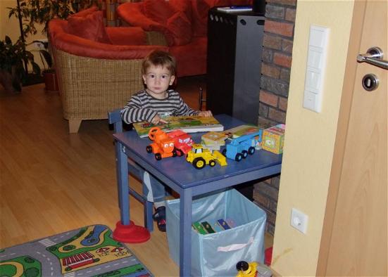 Am Freitag mußte Papa mit dem Auto zur Arbeit. Wir sind mit ihm mit und dann zurück gelaufen. Danch haben wir schön gefrühstückt und anschließend hat Mama mich noch ein wenig hingelgt da ich recht müde war. Danach sind wir zur Spielegruppe. Diesmall waren wieder einge mehr da, vorallem mein Kumpel Julian, den hatte ich schon sehr vermisst. Wir hatten wieder richitg viel Spaß und die Zeit verging viel zu schnell. Bald schon war wieder Ende und es ging nachhause. Mama hat lecker gekocht und nachdem ich noch ein wenig mit meinen Autos gespielt hab haben wir gegessen. Danch hat Mama die Sachen für unsere Rückfahrt eingepackt und ich hab ein kleines Schläfchen gemacht. Papa kam heute etwas früher von der Arbeit und so konnten wir gleich los. Leider war meine Erkältung immer noch nicht weg und ich mußte die ganze Zeit niesen. Endlich waren wir dann auch zuhase und ich war noch kurz bei Oma. Nachdem ich ein bißchen gegessen hab haben Mama und Papa mich ins Bett gebracht. Mh morgen wollten wir uns eigentlich mit Jannick und seinen Eltern treffen aber Mama meinte schon dass wir das wohl besser verschieben, schade vielleicht wird es noch besser.