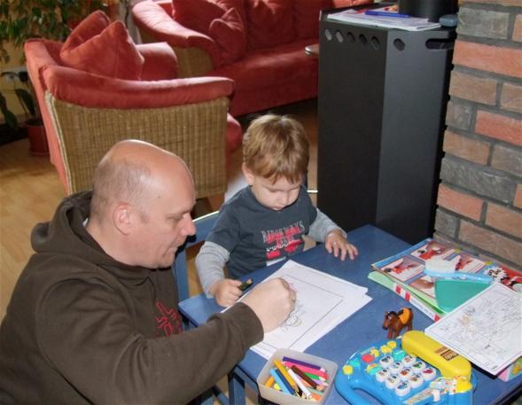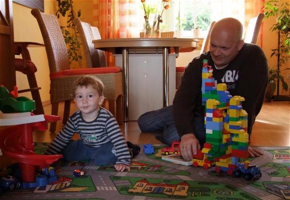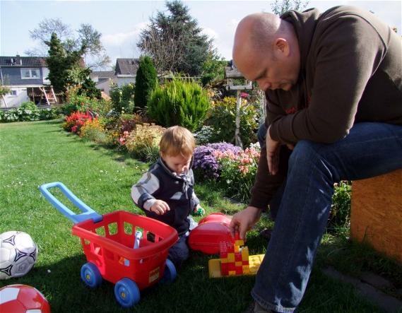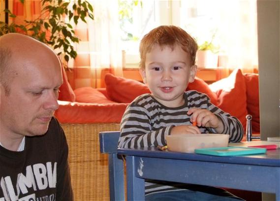 Am Sonntag hab ich mal wieder etwas länger geschlafen. Das war schön und Mama und Papa konnten sich so auch etwas ausruhen. Nach dem Frühstück hab ich mit Mama gespielt und ein bißchen gemalt. Die Erkältung war etwas besser nur die Nieserei war immer noch da. Mama war wieder mit ihrem Weibertreff verabredet und so hatten Papa und ich Männertag. Mama hat noch ein lekceres Mittagessen für uns vorbereitet und schließlich mußte sie los. Nachdem Papa und ich noch ein paar Runden im Garten gedreht hatten sind wir auch rein und haben gegessen. Da ich schon sehr müde war hat Papa mich dann schnell ins Bett gebracht und ich hab mich ausgeruht. Ich wollte ja für später wieder fit sein. Nachdem ich wieder wach war hab ich noch mit Papa gekuschelt. Anschließend hab ich noch ein paar Weintrauben gegessen und schließlich durfte ich noch zu Oma. Nachdem Papa mich wieder abgeholt hatte haben wir draußen mit meiner Schubkarre und den Bauklötzen gespielt. Bald kam dann auch Mama zurück und nachdem wir zusammen zu Abend gegessen hatten hat Papa noch eine Garage aus Bauklötzen für mich gebaut. Plötzlich stand Vera vor der Tür, hihi sie hatte Sachen für uns von Oma und Opa aus Tirol. Ui für mich war ein neues Buch drin und lekcere Marmelade. Vera blieb aber nicht lange denn ich mußte auch ins Bett und Papa mußte ja leider schon wieder weg. Mh schon blöd aber bestimmt ist bald Mittwoch und wir sind wieder zusammen. Ich hab Papa noch ganz viele Bussis gegeben und dann hat er mich ins Bett gebracht.