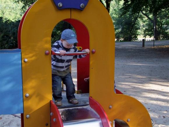 Wir hatten wieder Glück mit dem Wetter sodass wir Papa zur Arbeit bringen konnten. Anschließend hab ich noch ei wenig geschlafen und danach sind Mama und ich zum Schloßpark gelaufen. Das Wetter war wieder richitg schön und so konnten wir laufen. Diesmal waren nicht ganz soviele Kinder aber so konnte ich wenigstens immer mit dem Aotu fahren wenn ich wollte. Wenn sonst so viele Kinder da sind ist das häufig besetzt. Mama und Papa sagen dann zwar immer dass man abwechseln muß aber wenn ich drauf bin will ich auch so schnell nicht wieder runter...naja meistens sind dann noch andere Sachen die man machen kann. Aber ihr kennt das ja wenn man grad das haben will...Später wieder zuhause hat Mama lecker für uns gekocht und danach haben wir gemalt. Mama malt immer so schöne Igel und ich möchte auch immer Autos, Anhänger und Züge...Ich versuche ja auch schon immer zu malen aber son ganz klappt das nicht. Aber Übung macht den Meister. Nach meinem Mittagsschlaf sind Mama und ich los um uns noch ein Haus anzuschauen. Eigentlich war es sehr schön nur leider ohne Garten. Mh Mama meint das wäre nichts für uns, vorallem für mich und ich finde da hat sie recht. Dann haben wir noch schnell Papa abgeholt und nich hab richitg wild mit ihm getobt und gespielt. Schließlich müssen Mama und ich ja morgen zurück und ich seh Papa erst Samsatg morgens wieder. Puh wird wieder komisch. Leider war dann aber auch schon wieder Bettzeit für mich und so bin ich brav eingeschlafen.