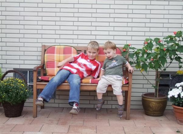 Am Dienstag war ich wieder recht früh wach und so hat Mama mich vormittag noch einmal ins Bett gebracht. ich hab auch fast eine Stunde geschlafen und anschließend haben wir meinen Kumpel Leo besucht. Dort haben wir ein bißchen gespielt während unsere Mamis ein bißchen gequatscht haben. Da ich aber noch zu Oma wollte sind wir diesmal nicht solange geblieben. Bei Oma ging es wieder richitg hoch her und nach fast zwei Stunden waren Oma und ich ziemlich ko. Arme Omi muß ganz schön leiden bei mir...aber ich glaube das macht sie gerne. Anschließend haben Mama und ich zu Mittag gegessen und dann hab ich schön und vorallem recht lange geschlafen. Danach waren wir noch im Garten denn das Wetter war richitg schön. Mama hat in der Zwischenzeit noch den Rest für Mittwoch zusammengetragen. Endlich wieder bei Papa und dann für eine ganze Woche. Jipiiii. Später hab ich noch mit Oma und Opa aus Tirol telefoniert. Die beiden haben erzählt dass sie gard noch mit dem Rad unterwegs waren und dass so tolles Wetter ist. Genau wie bei uns. Anschließend haben wir noch mit Papa gequatscht und danach war es Zeit für mich ins Bett zu gehen.