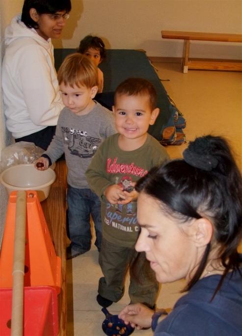 Am Donnerstag waren wir morgens erst einkaufen und anschließend in der Spielegruppe. Im Moment sind immer recht wenige da aber da der Raum recht klein ist ist das nicht so schlimm. Bald dürfen wir wieder in unseren alten Raum der wird nämlich grad renoviert und ist noch nicht ganz fertig. Jedenfalls hatte ch jede Menge Spaß mit denen die da waren . Wir konnten nach herzenslust rutschen, toben und und und... Als wir zurück waren hat Mama schnell Essen gemacht, denn ich sollte heute eher ins Bett da wir noch mit Georg und seiner Mama verabredet waren. Es klappte auch alles gut ich hab brav geschlafen und so konnten wir auch bald los. Marina und ihre Mama waren schon da. Ui was gab es da viele tolle Spielsachen. Ein Auto zum fahren, zwei Roller, kleine Autos und noch vieles mehr. Etwas später kamen noch Julian und seine Mama und wir hatten ganz viel Spaß. Unsere Mamis genossen es auch dass wir vier alle so lieb waren und so war es ein richitg schöner Nachmittag. Auf dem Nachhauseweg haben wir noch Papa abgeholt und ich hab ihm erzählt welch tolle Sachen Georg hat. Nach dem Abendessen waren wir in der Badewanne und danach war ich richitg toll müde fürs Bett.