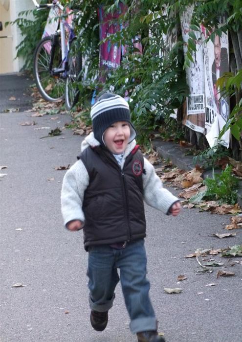 Mh schade das Wochenedne vergeht immer so schnell und Papa muß heute abend schon wieder weg. Puh das waren jetzt soviele Tage zusammen und jetzt bis Mittwoch wieder ohne Papa. Heute haben wir Besuch von Guido und Ute bekommen. Sie haben mir zwei ganz tolle Autos und eine Mundharmonika mitgebracht. Ich mußte erst etwas üben aber nach ein paar Versuchen hab ich sogar ein zwei Töne herausbekommen. In der Zwischenzeit wurde das Wetter besser und wir fünf sind noch eine Runde gelaufen. Hihi Ute hat immer mit mir nach kleinen Mauern Ausschau gehalten auf denen ich balncieren konnte. Papa und Guido durften dann mein Auto tragen, ich bin lieber mit Ute gelaufen. Das hat so viel Spaß gemacht durch die Blätter zu laufen.... Wieder zurück mußten sich die beiden auf den Heimweg machen. Mama hat dann schnell essen gemacht denn ich hatte schon Hunger und müde war ich auch. Nach dem Essen hat Mama mich schnell ins Bett gebracht und ich hab wieder über zwei Stunden geschlafen. Mh das hat gut getan. Danach hab ich noch mit Papa gekuschelt und anschließend war ich noch bei Oma. Aber irgendwir fühlte ich mich schlapp und nachdem Papa mich wieder abgeholt hat haben wir zusammen gemalt. Das gefiel mir heute irgendwie besser..naja man hat schon mal solche Tage. Naja schließlich war es Zeit für mich ins Bett zu gehen. Ich hab Papa noch ganz viele Bussis gegeben und dann hat er mich ins Bett gebracht.
