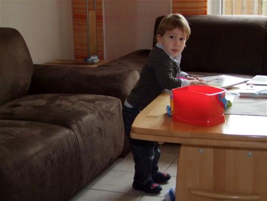 Am Dienstag waren wir zum Frühstück bei Petra. Nele hat auch viele tolle Spielsachen und so hatten wir Knder jede Menge Spaß. Unsere Mamis konnten in Ruhe frühstücken und ein bißchen quatschen und wir haben brav gespielt. Nele hat auch so schöne Spielsachen, vorallem die Eisenbahn hat es mir angetan. Wir hatten zwar nachher alles auseinandergebaut aber unsere Mamis haben uns geholfen alles wieder richitg zusammen zu setzten. Da wir mit dem Knderwagen unterwegs waren sind wir zusammen mit Melanie und Leo nachhause gelaufen. Nach dem Mittagessen hab ich brav geschlafen und anschließend haben Mama und ich noch eine kleine Zwischenmahlzeit zu uns genommen. Für mich gab es Apfel und Mama hat Kaffee getrunken. Ich könnte mich im Moment nur von Äpfeln ernähren. Die sind ja auch gesund und deshalb darf ich genug davon essen.. Nachmittag war ich wieder bei Oma drüben. das ist immer so schön. Mama kann dann in Ruhe noch alles für unsere reise vorbreiten und ich kann mich austoben. wieder zurück haben wir mit Oma und Opa aus Tirol telefoniert. Lieder sind die beiden so weit weg und wir sehen uns nur über den Pc, aber immerhin können wir uns unterhalten und Oma und Opa sehen wie ich schon wachse und was ich wieder alles kann. Papa war heute länger unterweegs und so hat Mama mich fürs Bett fertig gemacht.