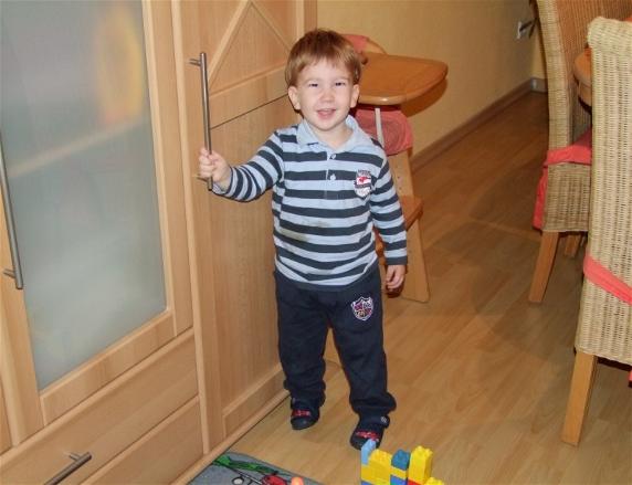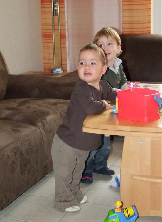 Die Woche war wieder einmal sehr ereignisreich. Leider war Papa ja schon wieder weg aber Mama hat mir versprochen dass wir am Mittwoch wieder mit dem Zug zu Papa fahren. Vormittag waren wir bei Heidi und Maya. Da Mama nicht mehr genau wußte wohin haben wir Kerstin und Leon abgeholt und sind dannzusammen hingelaufen. Ich durfte die ganze Strecke laufen. Das hat Spaß gemacht denn es gab einiges zu schauen. Maya hat uns schon erwartet. Lucia war auch schon da und so konnten wir zusammen spielen. So viele tolle Spielsachen, wow, Lucia und ich haben uns aber dann ins Bällehaus verzogen und haben ein bißchen Quatsch gemacht, hihi das war lustig. Später haben wir noch zusammen aufgeräumt und dann ging es wieder nachhause. Ich war schon sehr müde und nach dem Mittagessen hat Mama mich ins Bett gebracht. Ich hab tief und fest geschlafen aber Mama hat mich plötzlich geweckt, mh was ist denn nun los...ach ja ich hatte ganz vergessen dass wir ja noch zu Sven-Leons Geburtstag wollten. Gesagt getan, Mama hat mich schnell angezogen und dann sind wir los. Sven-Leon hat sich gefreut als wir endlich da waren und er hat auch ganz viel mit mir gespielt. Ich hab ein bißchen Kuchen gegessen und einen Apfel. Sven-Leon hat mir dann auch noch eine Fernbedienung geschenkt die ganz tolle Geräusche macht, das hab ich dann natürlich sofort ausprobiert. Wieder zurück durfte ich noch ein wenig zu Oma. Sie hatte mich heute noch gar nicht gesehen und deshalb war ich noch vor dem Abendessen bei ihr. Anschließend haben wir noch mit Papa telefoniert und dann ging es auch schon ins Bett.