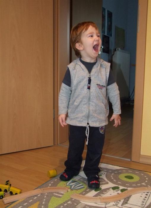 Mh die Woche war wieder sehr durchwachsen. Leider war ich anfang der Woche schon wieder etwas krank. Der blöde Schnupfen wollt einfach nicht weggehen und noch dazu war Papa morgens ja wieder weg..mh immer alles zusammen. Ich bekomme im Moment einige Zähne und die plagen mich auch ab und zu. Puh momentan bleibt mir auch nichts erspart. Mama hatte aber schon gestern unsere Treffen abgesagt, denn ich will ja meine Freunde nicht anstecken und ehrlich gesagt war mir auch nicht danach rauszugehen. Das Wetter war auch schlecht und so bin ich mit Mama zuhause geblieben. Da ich nachts so schlecht geschlafen hab bin ich vormittag im Wohnzimmer auf der Couch eingeschlafen. Das hat ganz gut getan und danach konnte ich wieder etwas spielen. Nach dem Mittagessen hat Mama mich ins Bett gebracht und ich hab über zwei Stunden geschlafen. Danach war ich noch bei Oma drüben um ein wenig zu spielen. Später haben wir noch mit Papa telefoniert, ich vermisse ihn so sehr...er hat mir ein paar meiner Autos in Weinheim gezeigt und mir gesagt dass er mich auch vermisst und mich ganz toll liebt...ui da ging es mir gleich viel besser.Ich freu mich schon auf Mittwoch....essen wollte ich heute nichts mehr und so hat Mama mich sehr früh ins Bett gebracht..für mich war der Tag aber auch sehr anstrengend.