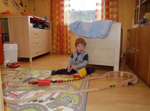 Am Samstag wollte ich eigentlich mit Oma zum Markt aber leider war das Wetter so schlecht sodass wir schließlich zusammen bei Ikea waren. Mh da gab es viel zu schauen, und während Mama und Oma ein paar sachen gesucht haben bin ich mit Papa durch die Gegend gelaufen...hihi besser gesagt Papa ist hinter mir hergelaufen. Papa hat für meine Eisenbahn noch ein paar zusätzliche Schienen gakauft und so wollte ich nachher schnell nachhause. Da Mama schon vorgekocht hatte haben wir Oma gleich zum Essen eingeladen und so konnte ich mit Papa und Oma meinen neuen Zug aufbauen. Wow eine richtig schöne Zuglandschaft hab ich nun...und zusätzlich einen neuen Teppich. Der Zug steht nämlich in meinem Kinderzimmer auf dem neuen Teppich. So kann ich im Wohnzimmer und in meinem Zimmer immer schön spielen. Mh mir geht es schon sehr gut, oder? Papa und Mama verwöhnen mich schon sehr und ich hab ein richitges Spieleparadies. Nach dem Essen hab ich eine schönes Nickerchen gemacht und anschließend mit Papa meine neue Eisenbahn eingeweiht..besser gesagt eingespielt, hihi. Endlich kam dann auch mein Kumpel Jannick. Da wir uns schon lange nicht gesehen hatten mußten wir erst einmal warm werden, aber nach einiger Zeit haben wir schön zudsammen gespielt. Ich glaub Jannick fand meine Spielsachen auch gut. Natürlich hab ich ihm auch meinen Zug gezeigt und wir haben oben ein wenig zusammen gespielt. Der Nachmittag verging sehr schnell und schon bald mußte Jannick gehen. Wir haben uns noch verabschiedet und uns ohne dass unsere Eltern es mitbekommen haben für schon bald verabredet...wär doch gelacht wenn das wieder solange dauern würde, oder....nicht mit uns...Nach dem Abendessen bin ich noch schnell mit Papa in die Badewanne aber ich war schon ziemlich ko und so ging es dann auch schnell ins Bett.