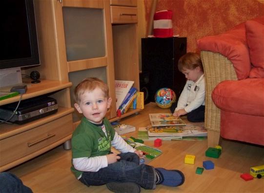 Am Donnerstag ging es mir schon wieder recht gut und so durfte ich in die Spielegruppe. Wir waren wieder recht viele und hatten großen Spaß zusammen. Meisten hab ich mit Felix mit der Parkgarage gespielt. Die Zeit verging wieder sehr schnell und schon hieß es wieder singen und bis nächste Woche. Wir haben noch schnell eingeauft und dann ging es nachhause. Nach dem Essen hab ich mit Mama einen ganz langen MIttagschlaf gemacht. Mh das war schön. Anschließend haben wir uns im Schloßpark mit Georg und seiner Mama getroffen. Das hat richitg Spaß gemacht und wir konnten schön zusammen toben. Leider wird es jetzt immer sehr schnell dunkel und so mußten wir uns verabschieden. Danach haben wir gleich Papa abgeholt und dann ging es schnell nachhause. Da wir mit dem Auto unterwegs waren war es noch recht früh und so konnte ich mit Papa noch vor dem Abendessen spielen. Ich habe heute zum ersten mal aus dem Becher getrunken ohne zu schütten. Hihi Mama hat sich gefreut und ich glaube sie war ganz schön stolz auf mich..naja ich werd ja auch älter und ich muß doch mit Georg, Luca und den anderen größeren Kinder mithalten. Nach dem Essen hat Papa mich fürs Bett fertig gemacht und dann sollte ich schlafen. Irgendwie war mir aber nicht danach und so hab ich Mama und Papa immer wieder gerufen..ui Mama ist dann aber ein bißchen böse geworden und so hab ich mich dann doch schnell entschlossen zu schlafen..aber später darf ich eh wieder zu den beiden ins Bett, hihi..