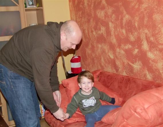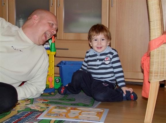Männertag. Mama war heute mit ihren Mädels verabredet. Sie wollten nach Aachen zum Weihnachtsmarkt. Mh ohne uns..naja sie soll sich auch mal etwas entspannen. Ich hab ja Papa hier. Nachdem wir Mama weggebracht haben bin ich tief und fest im Auto eingeschlafen. Papa ist noch ein wenig mit mir herumgefahren und so konnte ich gut schlafen. Später war ich noch bei Oma um zu spielen. Nachdem Papa und ich zu Mittag gegessen haben sind wir nach oben um mit dem Zug zu spielen. Da in meinem Kinderzimmer nicht soviel Platz ist haben Papa und ich den Zug ins Arbeitszimmer gelegt. Dort haben wir eine richitg tolle Strecke gebaut mit Licht und allem drum und dran. Ich wollte auch gar keinen Mittagschlaf machen aber nach einiger Zeit bin ich dann doch müde geworden und hab mich mit Papa zusammen ins große Bett gelegt. Aber da ich vormittag ja geschlafen hatte konnte ich nachmittag nicht mehr solange und nach einer Stunde war ich wieder fit. Danach bin ich mit Papa noch einkaufen gefahren. Mama hatte uns eine ganz schön lnage Liste geschrieben aber wir haben alles bekommen. Wieder zurück haben wir zusammen zu Abend gegessen und dann noch gespielt. Puh ich hatte so gehofft dass Mama noch nachhause kommt bevor ich ins Bett muß aber Papa hatte mir das schon heute morgen gesagt..aber man darf ja hoffen. Aber es war ein toller Tag mit Papa.