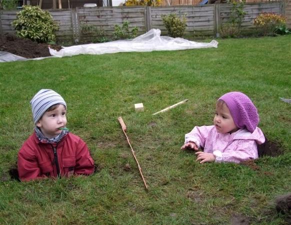 Die Woche in Weinheim war wieder toll. Wir haben mittlerweile sehr viele nette Freunde gefunden. Wir waren bei Dörte und Georg haben die Spielegruppen besucht und hatten wieder sehr viel Spaß. Am Donnerstag war ich zusammen mit Annik im Schloßpark. Dort ist ein richitg toller Spielplatz. Wir konnten zusammen im Sand graben und haben schön gespielt. Anschließend waren wir noch einen leckeren Kakao trinken und dann haben wir Papi abgeholt. Wir genießen die Abende zusammen sehr. Papa tobt dann immer mit mir und nach dem Abendbrot geht es meist schnell ins Bett. Am Freitag ging es wieder zurück. Oma hat uns schon erwartet und ich durfte noch richtig lange mit ihr spielen. Am Wochenende kamen noch einmal alle Nachbarn und haben geholfen den Rest für mein Spieleparadies aufzubauen. Nele kam diesmal auch denn ihr Papa hat uns auch ganz toll geholfen.