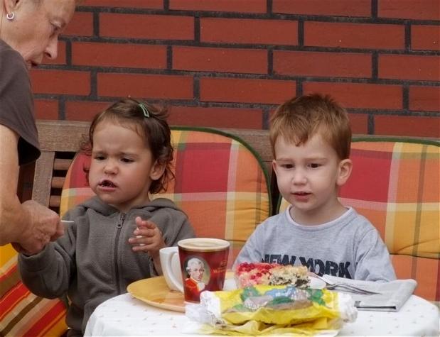 In der darauffolgenden Woche hatte Mama einiges zu tun Am Wochenende wollten nämlich Omi und Opi aus Tirol zu uns kommen. Endlich ich freu mich schon.... Mama mußte natürlich das meiste alleine machen, denn Papa war doch noch nicht fit...aber er hat auf mich geschut und viel mit mir gemalt und gelesen. So konnte Mama in aller Ruhe alles fertig machen. Am Samstag war es dann endlich soweit. Ich war schon ganz toll aufgeregt. Nach meinem Mittagschlaf waren wir noch im Garten und kurz nach fünf bin ich mit Mama zum Bahnhof gefahren. Der Zug kam pünktlich eingefahren und da wir schon wußten in welchen Abteil Oma und Opa sind standen wir genau richtig. Erst war ich noch etwas schüchtern aber ich bin ganz schnell aufgetaut und hab Oma und Opa gleich von meinen Zügen erzählt...wie sie alle heißen und, und...... schließlich sollten sie doch die nächsten zwei Wochen mit mir spielen. Papa hat uns schon erwartet und danach haben wir zusammen gemütlich zu Abend gegessen. Am Sonntag bekamen wir Besuch von Finja, Karina und Dirk. Die drei haben wir auch schon lange nicht mehr gesehen. Finja hat mir Bob der Baumeister Seife und Duschgel mitgebracht und Mama hat eine schöne Orchidee bekommen. Nach einem leckeren Brunch konnten wir nach draußen und haben das Wetter genossen. Finja und ich haben im Sandkasten gespielt und ich hab Finja gezeigt wie toll ich schon klettern kann. es war ein sehr schöner Vormittag. Schade dass wir uns nicht öfter sehen. Kurz vor meinem Mittagschalf haben sich die drei wieder auf den Heimweg gemacht...aber wir haben uns für die nächste Woche wieder verabredet, denn Omi und Opi wollten sich ja noch mit Finjas Omi und Opi treffen.
