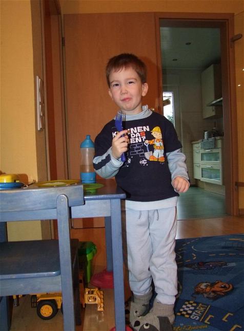 Es ist sooo schön dass Papa jetzt erst einmal nicht weg muß, ich kann euch gar nicht sagen wie sehr wir die Zeit genießen. Wir können zusammen spielen, wenn das Wetter gut ist raus gehen und einfach viel Spaß miteinander haben. Am Diensatg hatte Omi Geburtstag und wir waren alle zusammen frühstücken nachmittag bin ich mit Mama zu Leo zum Spielen gegangen. Der hat so tolle Spielsachen, ich natürlich auch aber das ist eben wieder neu für mich. Sonst war es ziemlich ruihg in dieser Woche. Papa spielt immer so toll mit mir Zug. Es ist schön dass ich mir meine Speilpartenr nun aussuchen kann, hihi..mit Papa spiele ich zum Beispiel lieber Zug und mit Mama kann ich dann kneten oder malen, hihi..mir geht es richitg gut zur Zeit. Und nicht zu vergessen Oma ist ja auch noch da, ich bin fast jeden Tag bei ihr. Sie hat auch immer wieder Überraschungen für mich. Nun ihr seht mir geht es sehr gut..und bald kommt noch das Christkind...und dann werde ich meine Lullis endlich abgeben. Die kleine Babys brauchen die doch und ich bin ja schon groß.. Am Samstag bin ich mit Mama und Papa zu Dany gefahren. Sie hatte auch Geburtstag und hat den mit uns und noch ein paar Freunden gefeiert. Jannick und ich haben schön gespielt während die Großen sich unterhalten haben. Es gab leckeres Essen. Mh das schmeckte prima, es gab Salate und Fleisch, Würstchen und viels mehr...man konnte dann das Fleisch und die Würstchen selber auf den Tischgrill legen unfd dann konnte es losgehen. Mh mir schmeckte es hervorragend. Später hat Jannick mir noch sein neues Bett gezeigt. Wow er hat schon ein ganz großes Bett, da muß er mit einer Leiter drau und unten drunter kann man sich verstecken. Er bekommt bald noch zwei Geschwisterchen und die bekommen dann sein kleines Bett...ui Mama hat mir davon erzählt dass bald die Babys kommen, bestimmt brauchen die dann meine Lullis.