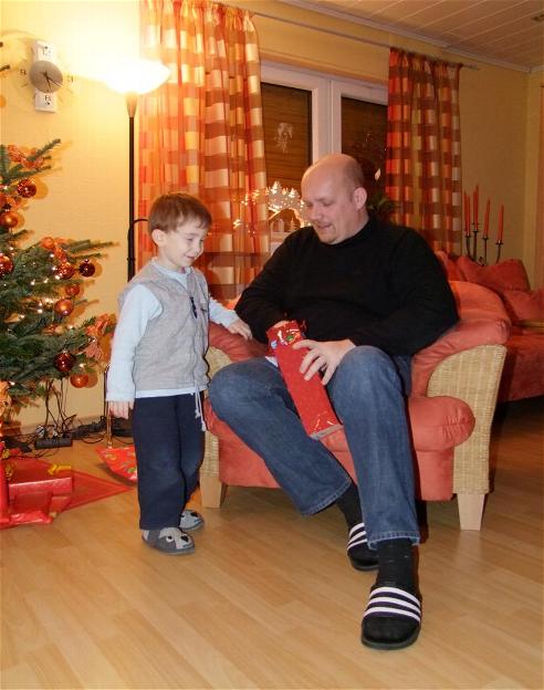 Am Dienstag war ich mit Papi und Mami einen Weihnachtsbaum aussuchen. Mama hat mir gesagt dass das Christkind soviel zu tun hat und wir deshalb den Baum selber aussuchen dürfen. Das haben Papa und ich dann auch in die Hand genommen und wir haben ganz schnell einen schönen Baum gefunden. Nachdem wir ihn nachhause transportiert hatten kam er in einen Kübel mit Wasser und Papa stellte ihn noch in den Keller. Ich war schon sehr aufgeregt denn am Freitag war es soweit das Christkind sollte doch kommen. Ich war auch ganz besonders lieb..mal schauen ob das Christkind auch etwas für mich hat, naja jedenfalls wollte es meine Lullis mitnehmen......am Donnerstag war Mama noch unterwegs und hatte einiges zu erledigen. Ich bin mit Papa zuhause geblieben und wir haben mit meiner Eisenbahn gespielt. Nachdem Mama wieder zurück war haben wir gegessen und nach meinem Mittagsschlaf durfte ich zu Oma rüber. Mh eigentlich mag ich gar keinen Mittagsschlaf mehr machen aber Mama meint dass das ganz gut ist und wenn ich erkältet bin brauch ich deas wohl, mh naja mal schauen ob ich bals einmal darauf verzichten kann. Irgendwie wollte ich dann auch abends gar nicht richitg einschlafen da ich schon ziemlich aufgeregt war. Dann wurde es doch Zeit und ich müde..uhaaa gute Nacht.. Freitag 24 Dezember...ich hab ganz schön gestaunt, das Christkind war schon da und hat unseren Tannenbaum ganz toll geschmückt...mh nur die Geschenke hat es wohl vergessen...Papi meinte dass es erst noch woanders hin müsse und unsere Geschenke abends kommen sollten...mh mal schauen..nach dem Essen hab ich etwas geschlafen und anschließend sind wir alle zusammen in den Kindergottesdienst gegangen. Das war schön, auf dem Rückweg war es schon dunkel und ich durfte noch nach oben um mit oma Zug zu spielen...als plötzlich Glöckchen klingelten.ui ich war aufgeregt, das Christkind!!! Juhuuuuuu endlich..leider hab ich es nicht mehr sehen können, aber was es allles für mich da gelassen hat, wow...ich wußte gar nicth wo ich anfangen sollte. Erst hab ich ein neues großes Fahrrad gesehen, mit Helm und Fahne...dann hab ich noch Lego bekommen, Bücher, Musiksachen, Autos, Unterwäsche und vieles mehr..ich war wohl wirklich brav. Mama, Papa und Oma haben auch viele Sachen bekommen und alle haben sich sehr gefreut. Anschließend haben wir zusammen gegessen und nachdem ich noch ein wenig spielen durfte ging es ins Bett...ich war so toll müde dass mir erst gar nicht so auffiel dass meine Lullis alle weg waren...urghhh, das war schon komisch, ich war tapfer und habe versucht schnell einzuschlafen. Nachts hab ich dann einmal nach dem Lulli gesucht und auch ein wenig geweint. Mama und Papa haben mich schnell getröstet und mir erklärt dass die kleine Babys doch meine Lullis jetzt haben. Puh, ich bin dann wieder eingeschlafen und siehe da es klappte auch ohne...ich glaube Mama und Papa waren ganz schön stolz auf mich..und ich auch..