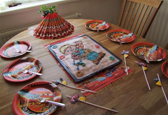 Ich wurde sowieso von Tag zu Tag aufgeregter, denn morgen stand mein Geburtstag an. Ich hatte mir einen Bob der Baumeister Kuchen gewünscht. Oma hatte ihn schon gebacken und Mama sollte ihn dann noch verzieren. So sind wir am Mittwoch nach dem Skifahren zu Oma und Opa und während ich gespielt habe haben Oma und Mama meinen Kuchen gemacht. Zwischendurch kamen noch Mario und Kilian vorbei. Als der Kuchen fertig war hab ích ganz schön gestaunt, es war ein Meisterwerk. Danach haben wir zusammen zu Abend gegessen und nach diesem tollen Tag ging es wieder ins Quartier. Ich wollte doch schließlich an meinem Geburtstag fit sein. Dann war es soweit, Mama und Papa haben mir ein Ständchen gesungen und ich hab ein neues tolles Dinobuch bekommen. Beim Frühstück hab ich auch noch eine kleine Überraschung bekommen. Dann sind wir noch zum Schlittenfahren. Das Wetter ist mittlerweile so toll geworden, das wir das natürlich ausnutzen wollten. Wir sind mit dem Bus nach oben gefahren und dann konnte es los gehen. Ui war das toll allerdings war im Wald noch nicht so viel Schnee und deshalb mußten wir zwischendurch auch mal laufen. Papa hat dann auch noch seinen Handschuh verloren und deshalb mußte ich mit Mama noch einmal los und wir hatten Glück wir konnten Papas Handschuh finden. Papa hat in der Zwischenzeit auf uns gewartet. Danach ging es endlich zu Oma und Opa. Onkel Mario, Tante Kathrin, Kili, Feli und Filip kamen auch zu meiner Geburtstagsfeier. Endlich durfte ich auch meine Kerzen auspusten und dann kamen meine tollen Geschenke. Ich hab jede Menge neue Züge bekommen, Bertie den Bus und Herold den Huschrauber. Hab ich mich gefreut....so schöne Sachen. Etwas später sind wir mit Onkel Mario und Kilian zum Eishockeytraining gefahren. Ich mußte doch mal schauen wie toll er spielen kann..ich war schon ganz gespannt. Auf dem Weg zur Halle bin ich allerdings eingeschlafen doch ich war schnell wieder fit und so konnte ich mir alles genau anschauen. Wow ich kann euch sagen...Kilian fährt richtig toll auf Schlittschuhen. Ich bin gar nicht mehr aus dem Staunen herausgekommen. Und beim Trainingsspiel hat er noch jede Menge Tore geschossen. Das war super...Nach einem langen Tag ging es dann aber zurück zu unserem Quartier. Ich war sehr müde und nach meiner Milch und einer Guten Nacht Geschichte bin ich auch flott eingeschlafen.
