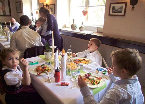 Der nächste Morgen begann mit einem tollen Frühstück. Ich konnte aus ganz vielen Sachen wählen. Es gab verschiedene Säfte, viele Brötchen, Wurst, Käse, Eier, frisches Obst und selbstgemachte Marmelade. Danach mußten wir uns alle schnell fertig machen denn heute war die Taufe von Filip. Erst haben wir Oma und Opa abgeholt und dann ging es zur Kirche. Bald waren alle da und es konnte losgehen. Filip war sehr brav und nachdem alles vorbei war sind wir gemeinsam zu Essen gefahren. Mh das war lecker. Ich durfte mit Kili und Feli an dem Kindertisch sitzen und wir drei durften ganz alleine essen. Das war toll. Ich hab brav gegessen und anschließend waren wir ein wenig draußen zum Spielen. Anschließend sind wir noch mit zu Mario und Kathrin und dort gab es leckere Roulade die Oma noch gebacken hatte. Wieder in unserem Quartier haben wir noch ein Buch gelesen und danach bin ich schnell zwíschen Mama und Papa eingeschlafen. Mh das war schön, Mama hat mich allerdings in mein Bett gelegt. Am nächsten Morgen sind wir erst einmal los um für mich Ski, Schuhe und einen Helm auszuleihen, schließlich wollte ich doch auch einmal probieren zu fahren. Danach waren wir bei Oma und Opa. Oma hatte leckere Schnitzel gemacht, mit Reis und Kartoffelsalat. Da es angefangen hat zu schneien mußten wir uns am Abend beeilen wieder zu unserem Quartier zu kommen. Es hat die ganze Nacht geschneit und sogar noch tagsüber. Der Schnee hat uns nicht davon abgehalten schon einmal meine Skier auszuprobieren. Das war ein Spaß. Mama hat mir gezeigt wie ich bremsen muß und Papa hat mich immer wieder ein Stück nach oben getragen. Später sind wir noch mit dem kleinen Lift gefahren sodass wir etwas länger fahren konnten. Mama hatte mich zwischen ihren Beinen und so konnte ich richtig schön üben. Nach zwei Stunden war dann aber auch genug und wir haben uns gestärkt. Nach dem leckeren Essen haben wir uns umgezogen und es ging noch zu Oma und Opa. Ich hab mit Mama und Oma eine kleine Runde gedreht. Wir waren am Bahnhof und ich konnte wieder ein paar tolle Züge sehen. Dann sind wir noch einkaufen, Oma hat mir einen tollen Dinosaurier gekauft...wow...ich durfte ja schon mit den ganzen Dinos von Kilian spielen...und endlich hab ich auch einen eigenen. Am nächsten Tag sind wir mit Feli zusammen zum Voltigieren gegangen. Ich hab mir erst einmal alles angeschaut. Ui Feli kann das schon richtig gut. Ich durfte mir alles anschauen aber das beste war, nach dem Training durfte ich noch auf Fredi reiten. Das war ein Erlebnis. Ich durfte ihn bis zum Stall bringen. Danach haben wir noch eine Kleinigkeit gegessen und anschließend haben wir Feli noch nachhause gebracht.