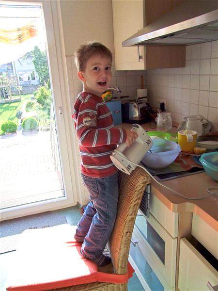 Am Samstag hab ich mit Mama Kuchen gebacken. Nachmittags wollten Sandra, Kersten und die Drillinge kommen, ich freute mich schon, besonders auf Leon. Da Mama noch einiges zu tun hatte war ich mit Papa alleine auf dem Markt, wir haben noch die restlichen Sachen besorgt und dann ging es wieder zurück...Wieder zurück war ich noch bei Oma und bald kamen die fünf...Kira hatte noch eine Freundin dabei und so ging es richtig rund bei uns im Garten..die vier Großen sind ganz viel gehüpft und auf meinen Klettertürmen hatten sie auch jede Menge Spaß....da ich immer noch etwas von der vorigen Nacht müde war, hab ich mich ein wenig zurückgezogen, mir war es nämlich ausnahmsweise einmal zuviel...aber da Oma da war konnte ich zu ihr und die vier Großen konnten in Ruhe toben ohne dass sie auf mich Rücksicht nehmen mußten. Am späten Nachmittag haben wir den Grill angeschmissen. Oma und ich waren pünktlich zum Essen wieder draußen, Kristoff kam auch noch und so waren wir eine lustige Runde...ich mußte allerdings zur normalen Zeit ins Bett...Mama hat mir gleich eine Geschichte aus dem neuen Seeräuberbuch vorgelesen dass ich von den fünfen bekommen hab. Es war sooo spannend dass ich auch noch eine zweite hören durfte...dann war aber Schluß und ich bin während der zweiten Geschichte eingeschlafen...es war wohl doch alles sehr anstrengend....wir werden sehen was es im Mai alles zu berichten gibt. Bis demnächst.....