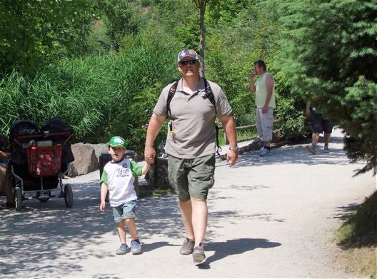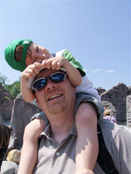 Am nächsten Morgen konnte ich es kaum abwarten bis Emily endlich aufgestanden war. Nach einem gemeinsamen Frühstück ging es dann raus in den Garten. Das Wetter war soooo schön dass wir beschlossen den Tag zuhause zu verbringen. So konnten sich die drei von der langen Fahrt erholen. Tante Yvi hatte nämlich schon einen ganz dicken Bauch, denn Emily wird bald eine große Schwester. So haben wir die Zeit genossen und nach dem Mittagessen und einer kleinen Pause konnte ich endlich wieder ins Becken. Emily zögerte noch etwas aber dann hatte sie auch Spaß. Onkel Mike kam auch rein und so konnten wir gut plantschen. Etwas später waren auch noch unsere Mamis mit im Becken...ui da wurde es schon enger, aber es klappte. Am Freitag ging es bei tollem Wetter nach Gelsenkirchen in den Zoo. Es gab sooo viel zu sehen. Erst einmal gingen wir nach Asien, in dem Zoo gibt es nämlich verschiedene Bereiche mit den Tieren die dort leben. Es gab unheimlich viel zu sehen. Und alles ist wie in einem Abenteuerspielplatz aufgebaut. Wir hatten jede Menge Spaß und waren viel unterwegs. Zwischendurch haben wir uns immer wieder ausgeruht denn Tante Yvi konnte mit ihrem Bauch nicht ganz so schnell. Da es auch sehr warm war haben wir uns viel Zeit gelassen und alles in Ruhe angeschaut. Um die Mittagszeit rum wurde ich aber auch ganz toll müde und nachdem Emily im Kinderwagen eingeschlafen ist hab ich es mir auf Mamas Schultern bequem gemacht. Danach haben wir Rast gemacht und ich hab mich noch ausgeruht. Später waren Emily und ich wieder fit und so konnten wir die Tiere in aller Ruhe anschauen.. Dann wurde es aber für Tante Yvi auch recht viel und am späten Nachmittag haben wir uns auf den Heimweg gemacht. Nach einem leckeren Abendbrot hieß es schnell ins Bett für uns Kleinen. Ich war auch ziemlich ko und bin ganz schnell eingeschlafen.
