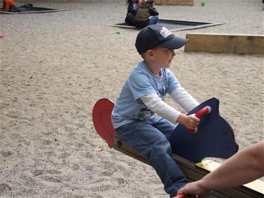 Montag..mein erster Kindergartentag. Um zehn sollte ich da sein. Zur Eingewöhnung erst einmal nur eine Stunde und dann sehen wir weiter. Es waren schon ganz viele Kinder da und ich hab mir gleich etwas zum Spielen gesucht. Mama und Papa gingen in der Zeit in den Nebenraum...mh nach einer halben Stunde hab ich die beiden dann aber doch vermisst und Frauke, meine Kindergärtnerin, hat Mama geholt...uh ganz schön ungewohnt für mich....morgen soll ich wiederkommen...aber Angelika und Frauke, meine Kindergärtnerinnen sind beide sehr nett und deshalb möchte ich das gerne versuchen. Am Dienstag klappte es dann sehr gut, denn wir waren im Garten und ich durfte auch mit raus, so war ich abgelenkt und ganz überrascht als Papa und Mama da standen. Am Mittwoch war ich etwas früher da, denn Papa mußte leider für ein paar Tage nach New York fliegen und ich wollte auch dabei sein wenn er zum Flughafen muß. Puh Papa war ganz schön traurig, Mama und ich natürlich auch, aber wir hatten ja den Vorteil dass wir uns beide hatten, Papa mußte alleine fliegen. Den Rest der Woche klappte es eigentlich sehr gut im Kindergarten und ich begann auch schon Freunde zu finden. Leo war ja auch da, allerdings hab ich ihn immer nur getroffen wenn wir im Garten waren, aber das Wetter war sooo schön dass wir fast jeden Tag draußen waren.