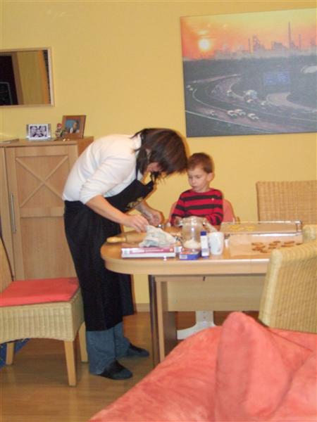 Am Sonntag war der erste Advent und das bedeutete dass wir die erste Kerze am Adventkranz anzünden konnten. So haben wir ganz gemütlich gefrühstückt. Ich war mit Papa Brötchen holen und wir haben es uns gut gehen lassen. Nachmittags sind wir mit der Fähre über den Rhein gefahren, das hat Spaß gemacht, drüben sind zu einem tollen Spielplatz gelaufen und dort konnte ich klettern, rutschen und rennen. Das hat Spaß gemacht. Da Wetter war noch so toll dass wir das gut machen konnten. Dann ging es mit der Fähre zurück und wieder nachhause. Am Montag hat Mama mich nach dem Kindergarten abgeholt und wir haben flugs gegessen, denn Mama hatte sich heute nachmittag mit ihren Freundinnen verabredet. Erst haben wir Astrid abgeholt und anschließend haben wir die beiden bei Karina abgesetzt. Sie wollten mit einem großen Taxi nach Xanten zum Weihnachtsmarkt. Den restlichen Nachmittag hab ich mit Papa verbracht der sich extra frei genommen hat um für mich Zeit zu haben. Da Mama erst etwas später zurück sein sollte hab ich mit Papa Abendbrot gegessen und anschließend hat Papa mich ins Bett grbacht, ich durfte bei ihm im Bett bleiben, allerdings als ich wieder wach wurde lag ich in meinem Bett....mh da muß er mich wohl heimlich rüber getragen haben, hihi...jedenfalls als ich gerufen hab, kam.....Mama...jipi und da es schon fast Zeit zum Aufstehen war durfte ich noch zu Mama ins Bett zum Kuscheln. Nach dem Frühstück hat Mama mich in den Kindergarten gebracht....und nachmittag kamen Melanie und Leo und wir haben zusammen die ersten Kekse gebacken.....so ist auch der November schnell vorbeigegangen... ich freu mich schon auf den Dezember...bis bald